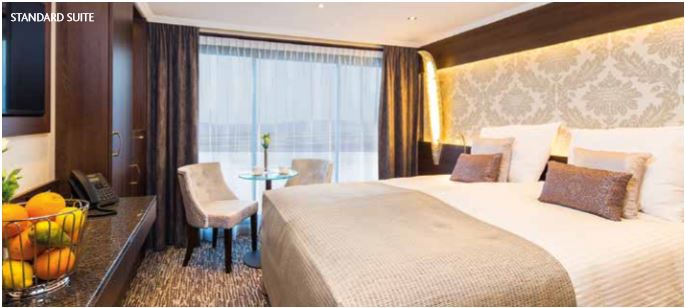 These exceptionally appointed suites measure 17 sq. metres (183 sq. feet), their generous dimensions amongst the largest to be found on a vessel sailing through Europe’s rivers. Imaginatively designed and appointed to the highest of standards, these suites contain all the luxuries you would expect to find in a ‘boutique style’ hotel. Your comfort is assured.